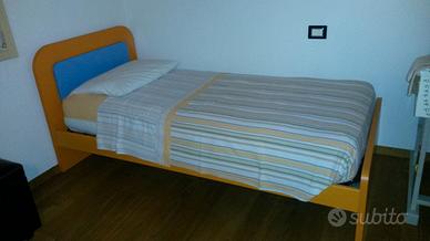 Vendo letto singolo moderno, arancione e blu, incluso di rete, misure 90x190.