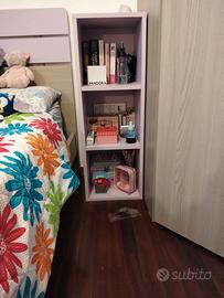 Vendo per cambio cameretta letto singolo 89x198x100 cm colore olmo perla e lilla come da foto compreso di rete a doghe e materasso memory 80x190x20.