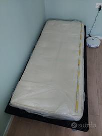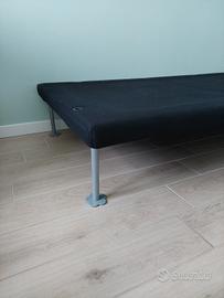 Struttura letto singolo da 207x95 cm, alto 32 cm. In legno foderato nero, con piedini in metallo. Disponibile con maggiorazione di €10 anche materasso di 10 anni circa, mai utilizzato da 185x76x13 cm.