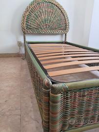 Letto singolo in midollino multicolore, completo di rete a doghe in faggio, azienda: Dolce far niente. L.100x200xH.36 spalliera H.120