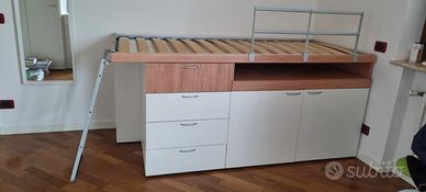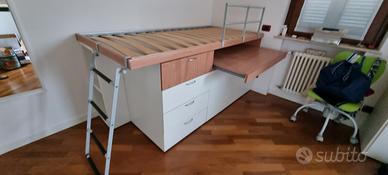 letto alto con cassettiera, contenitore a due ante e scrivania estraibili. in buone condizioni. Disponibili n. 2 letti uguali. il prezzo è riferito ad un solo letto. Letto già smontato pronto per il ritiro in provincia di Parma