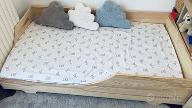 Causa inutilizzo, vendo letto singolo per bambini in legno di pino, modello Cube 3, Natural Pine wood, 90x160, comprensivo di materasso.