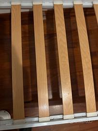Letto singolo per cameretta bambini in legno e metallo. Buone condizioni. Larghezza 90 Lunghezza 204 Altezza doghe 30 Altezza spalliera 70 (Cassettiera coordinata) No spedizione