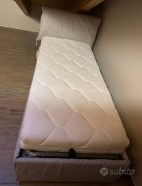 il letto ha le misure standard largo 200cm, profondo 90cm e alto 60cm il punto più basso la testata del letto è di 100cm