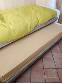 letto singolo per ragazzi, struttura con secondo letto estraibile. Supporto a doghe senza materasso. Ritiro a carico dell' acquirente.