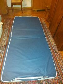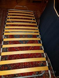 Letto singolo pieghevole, ottime condizioni, doghe e materasso Misure: Materasso alto 8 cm, lungo 178, largo 75. Rete: altezza 27 cm, lunghezza 190. Da piegato: 30 cm larghezza e 102 altezza.