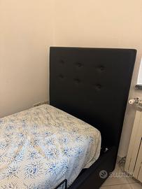 Vendesi elegante letto singolo con giroletto imbottito, perfetto per ottimizzare lo spazio in camera da letto o in una stanza per gli ospiti grazie al pratico vano contenitore integrato.
