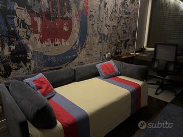 Vendo letto singolo più letto estraibile rivestito in velluto con cuscini .
