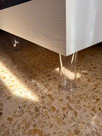 Letto singolo bianco in legno,doghe in legno e piedi trasparenti come mostrato in foto...usato poco....