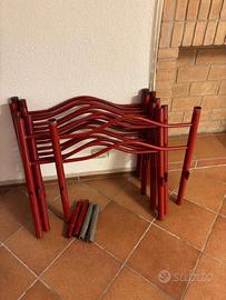 Strutture letti singoli che possono formare un letto a castello, prezzo ciascuno 20 euro, con rete o doghe di legno, rosso o grigio(con scaletta se letto a castello). Ritiro di persona, pagamento in contanti. Se interessati, possiamo mandare altre foto.