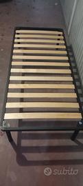 rete in metallo con doghe in legno . gambe smontabili ad incastro.
