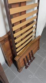 Vendo bellissima struttura per letto singolo realizzata in pregiato legno di ciliegio, completa di rete a doghe. Il mobile si distingue per l'alta qualità dei materiali e per una linea classica ed elegante, con una testata finemente lavorata che mette in risalto le venature naturali del legno.