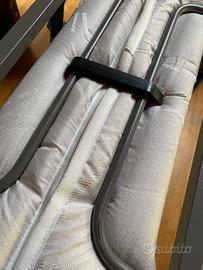 Letto singolo richiudibile, completo di materasso, struttura in ferro verniciato e doghe in legno; dotato di comode ruote per lo spostamento (da chiuso). Ottimo stato, usato poche volte (in vendita perchè non serve più).