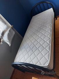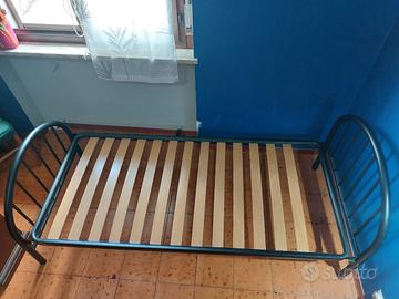 Vendo un bellissimo letto singolo con struttura in metallo nero e rete a doghe in legno (come si vede nelle foto), pronto ad accogliere sogni tranquilli!