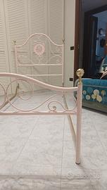 lettino rosa in ferro battuto laccato ,fiori dipinti a mano e pomelli in ottone