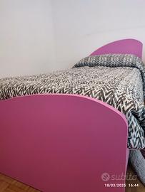 Vendo letto singolo colore rosa, con rete a doghe in legno. Misure standard letto a una piazza. È già smontato, pronto per il ritiro. Prezzo trattabile.