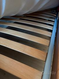 Letto singolo con doghe tutto in legno facilmente smontabile. Misure 199 x 92 compresa testiera. Ritiro in zona