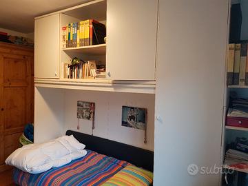 letto singolo imbottito in eco pelle blu con alzata laterale meccanica su ampio porta oggetti, Rete a doghe nuova.