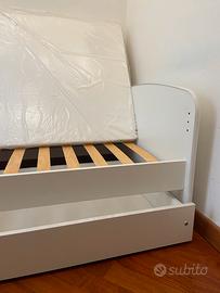 Come nuovo, letto singolo adatto a spazi piccoli grazie alle sue dimensioni compatte. Struttura in legno bianco con cassetti 85x185 cm Materasso nuovo, imballato, mai usato 80x180 cm Ritiro a mano a Milano zona Bande Nere