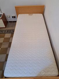 Letto singolo con struttura in legno, rete e materasso sfoderabile.