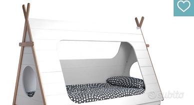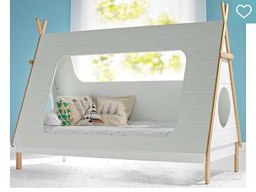Il letto è completo di rete in doghe di legno e materasso sfoderabile/lavabile ikea.