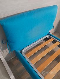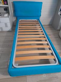Vendo letto singolo cm 220 x 91, altezza testiera cm 94, altezza piedi cm 17. Completamente sfoderabile, rete con doghe in legno. Zona Torino - Corso Giambone
