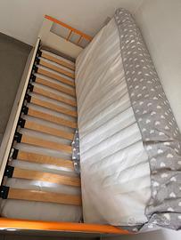 Due materassi. Uno sopra e uno sotto. Due strutture con doghe in legno.