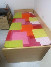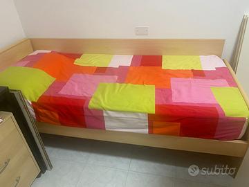 Letto singolo completo di materasso e copriletto. Dimensioni 2 m. x 1 m.
