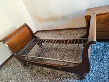 Materiale: Noce scuro, rete metallica originale inclusa Stile: Impero / Restaurazione — XIX secolo Condizioni: Discrete — segni d'uso, legno integro Misure indicative: Posto letto circa 80x190 cm (da confermare) Note: Pezzo autentico d'epoca. La rete non è moderna: valutare sostituzione. Ideale come divano o elemento decorativo.