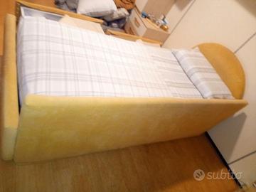 "Vendo letto singolo imbottito, marca Spima, completamente sfoderabile,rete a doghe, due cassetti estraibili alla base,no materasso