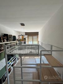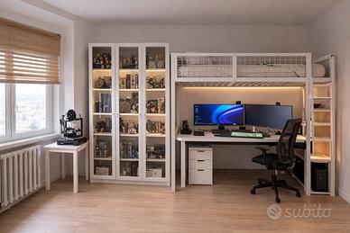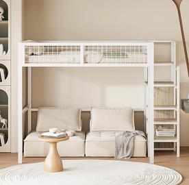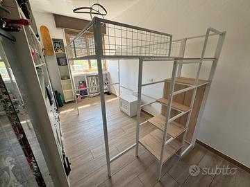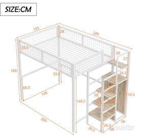 letto a soppalco matrimoniale 140x200 cm, acquistato su Amazon (modello con struttura in metallo e scala laterale), montato ma mai utilizzato. Perfetto per ottimizzare gli spazi: ideale per camerette, studio o piccoli appartamenti. ⸻ ✨ CARATTERISTICHE •Struttura robusta in metallo verniciato •Zona letto superiore con rete in ferro •Scala laterale con gradini in legno •Ampio spazio sotto il letto (scrivania, divano, contenitori) •Sponde di sicurezza •Design moderno bianco/legno ⸻ 📏 DIMENSIONI •Letto: 140 x 200 cm •Dimensioni totali: circa 249 x 145 x 180 cm (L x P x H) •Portata: circa 150-200 kg (materasso NON incluso) ⸻ 📦 CONDIZIONI •Pari al nuovo •Mai utilizzato, solo montato 👉 Viene venduto smontato, pronto per il trasporto 👉 Diviso in 3 confezioni / parti principali