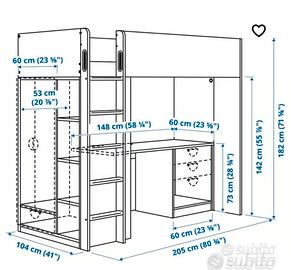 Letto a soppalco con scrivania modello SMÅSTAD IKEA in buone condizioni generali. Una combinazione molto pratica che occupa solo 2 metri quadrati