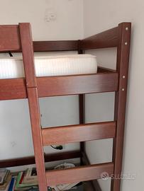 letto soppalco singolo, in legno massello color mogano. ortime condizioni