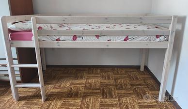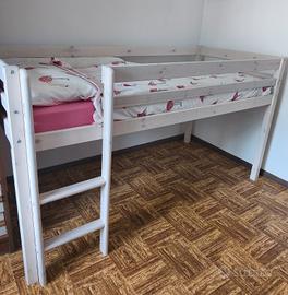 Letto a soppalco in legno bianco misure 100x208, altezza massima 113, altezza fino al letto 75. Materasso su misura come nuovo. Letto già smontato.