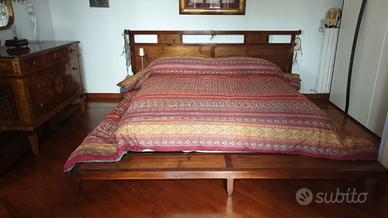 Rendi la stanza da letto ancora più comoda con questo letto con rete a doghe di ispirazione asiatica. Realizzato in legno di altissima qualità con finitura, presenta solidi piedi in legno massiccio che si sposano bene con la testiera in legno massiccio e listelli, mentre i comodini bassi lo rendono un arredo dal design davvero unico.