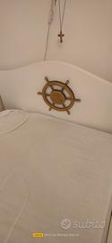 letto bianco stile marina, 96x200cm, con timone in ottone, completo di rete e materasso