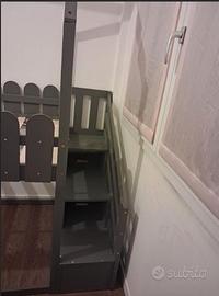Letto a castello con 3 scale, 2 cassetti, recinzione. 90 x 200 cm (grigio).