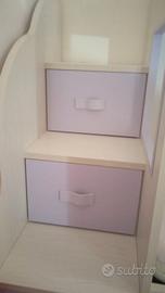 LETTO A CASTELLO CON TRE PIAZZE. COLOR BEIGE E VIOLA CHIARO. CON TRE CASSETTI. COME NUOVO. DA RITIRARE IN PROVINCIA DI TARANTO.