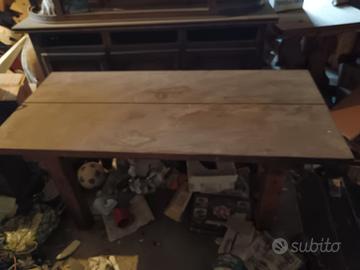 Testiera in ferro battuto 1 piazza, tavolo in legno, credenza, baule in legno. Tutto assieme