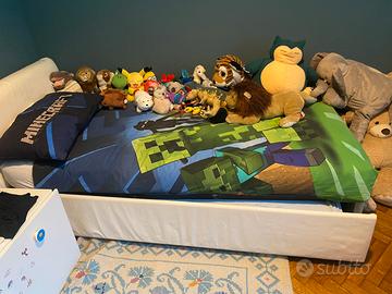 Letto tipo Flou con testiera in tessuto con secondo letto sotto e doppio materasso. Misure 100x 210