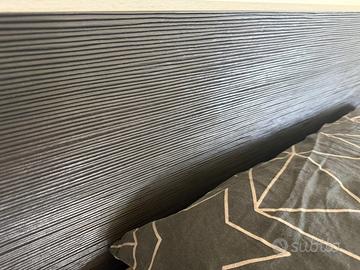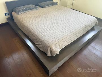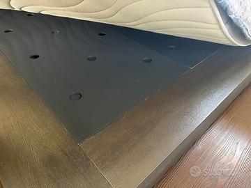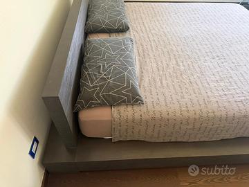 Vendo bellissimo letto stile futon. La rete è come in foto e da noi viene usato come letto contenitore anche se per accedervi bisogna alzare il materasso manualmente, ma per stipare cose che vengono usate poco va benissimo. Misure Lunghezza 244 Larghezza 208 Altezza testiera 78 Altezza laterali 22. Vendo per passaggio a letto più alto.