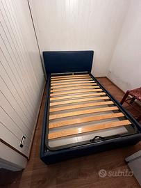 Vendo letto contenitore una piazza e mezza color blu con materasso.