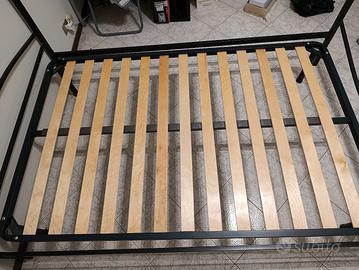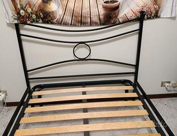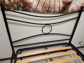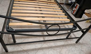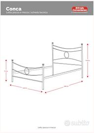 Vendo letto in ferro da 1 piazza e mezza mod. Conca di Mondo convenienza comprensivo di doghe. Misure letto in foto, misure doghe 120x190. IN BLOCCO E NO MATERASSO. La struttura al momento è già smontata e riposta in cantina e a breve anche le doghe. Come nuovo. Trasporto a carico dell'acquirente.