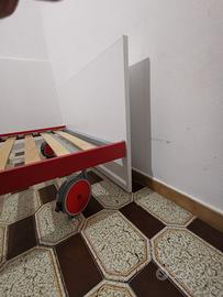 Struttura letto una piazza e mezza 128x200 cm con piedi rotelle con testata 130x75 cm Bianco e rosso.