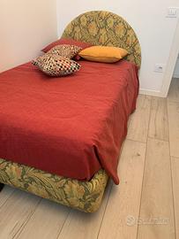 Letto a una piazza e mezza con materasso su misura nuovo a molle insacchettate e cuscino su misura titto rivestito da un tappezziere 400 euro