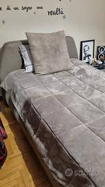 Vendo letto una piazza e mezza color tortora in pelle con contenitore e doghe in legno. La pelle è usurata