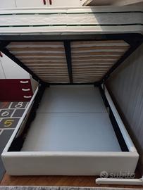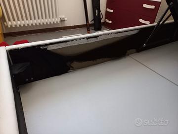 Letto una piazza e mezza in ecopelle con cassetto, rivestimento un po' consumato(come si vede nelle foto) però con un ottima struttura,senza materasso