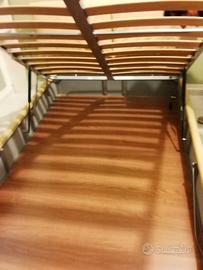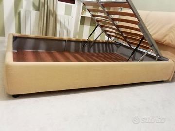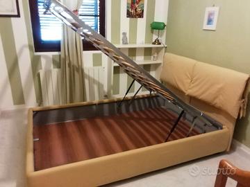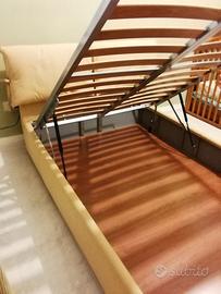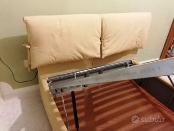 Vendo, per inutilizzo, letto 1 piazza e mezza con contenitore, acquistato da Stilmobil (Muros,SS). I poggia testa sono sfoderabili e lavabili. Come da foto, il rivestimento è di un giallo caldo e sobrio. E' un letto molto robusto, il giro letto è pulito e si presenta in ottime condizioni. NON è incluso alcun materasso. Si trova a Ploaghe e il trasporto è a carico dell' acquirente.