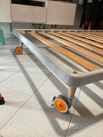 Letto in buone condizioni marca di pregio MORETTI COMPACT misure 200x128x31(altezza)con 4 ruote autobloccanti e struttura robusta,puó presentare qualche graffio nel perimetro causa usura e traslochi, ma nel complesso in buone condizioni.Ritiro a carico dell’acquirente NO CORRIERI