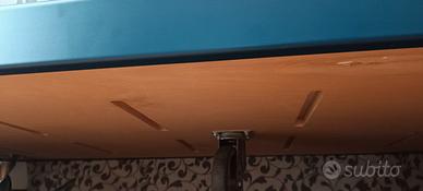Ideale per una cameretta, sagomato per essere appoggiato al muro. Pratico da spostare grazie alle ruote grandi, bloccate dai freni.